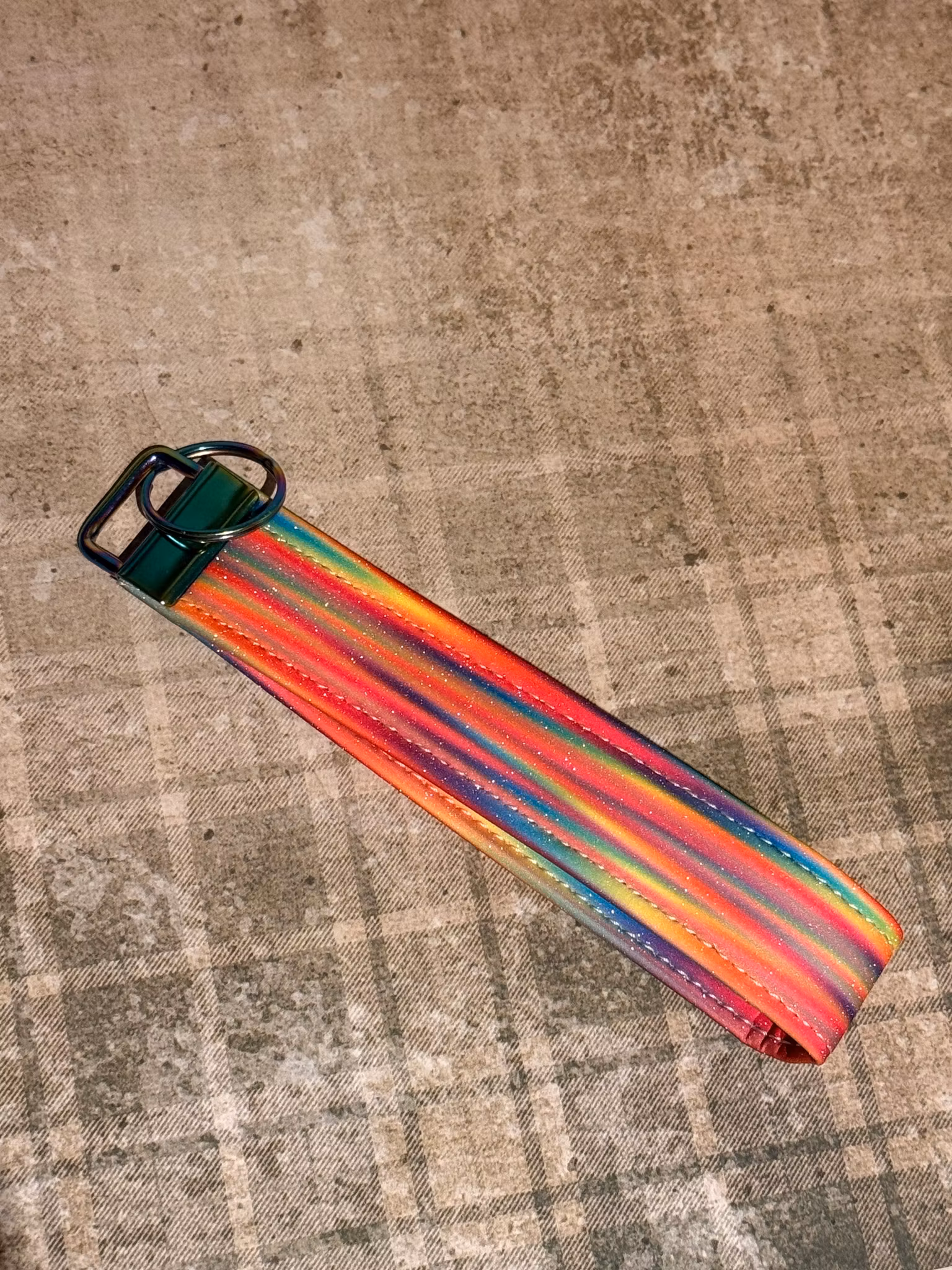 Nyckelring konstskinn/vinyl regnbågeskimmer