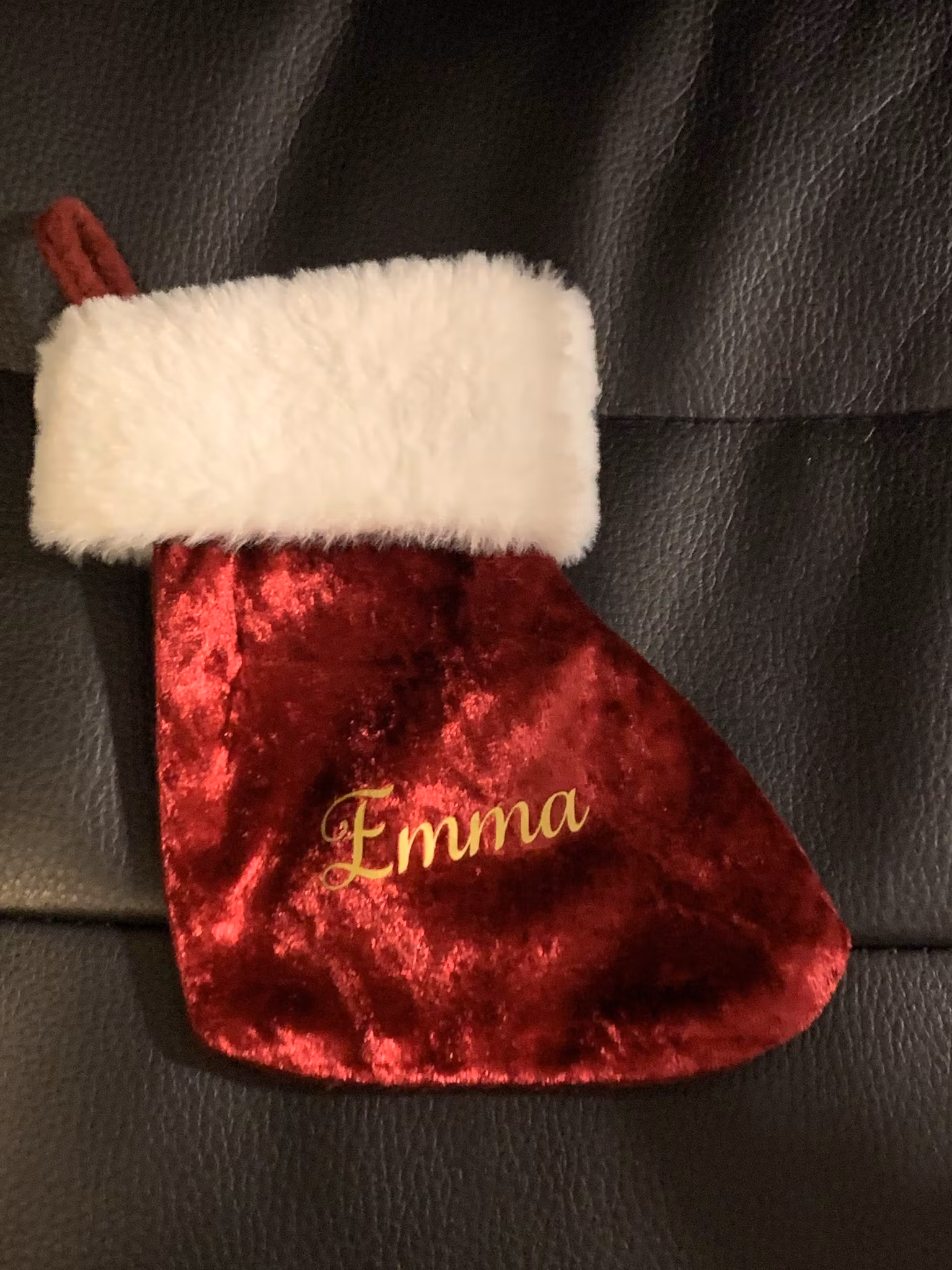 Julstrumpa ca 18 cm, med valfritt namn på.