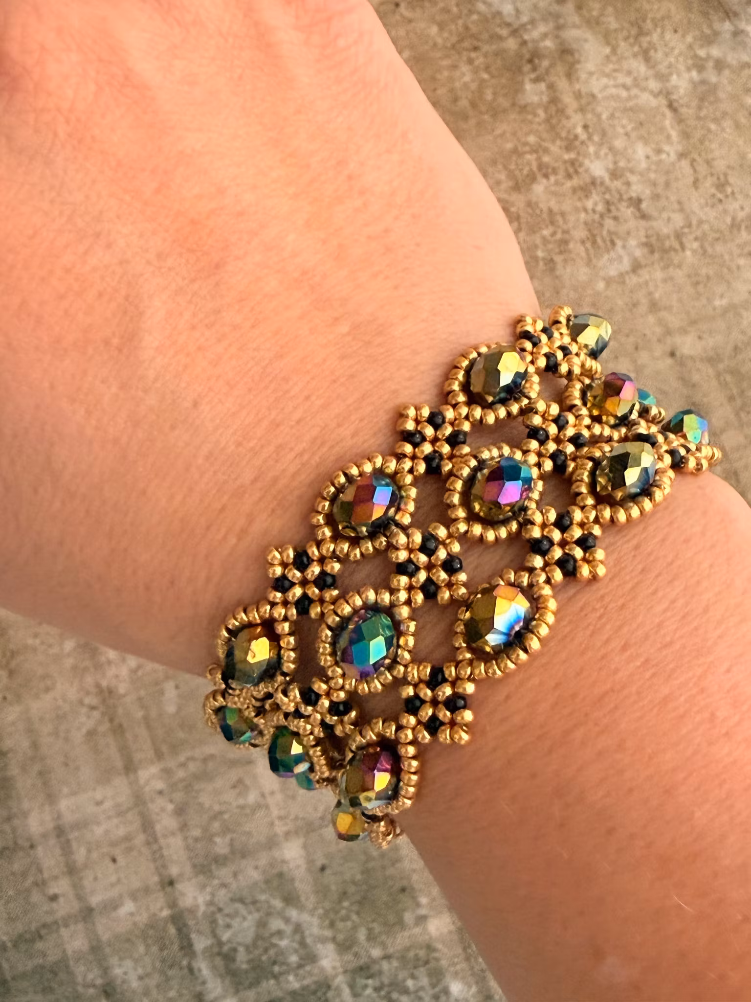 Handsytt armband av tjeckiska glaspärlor samt vackra abacuspärlo.