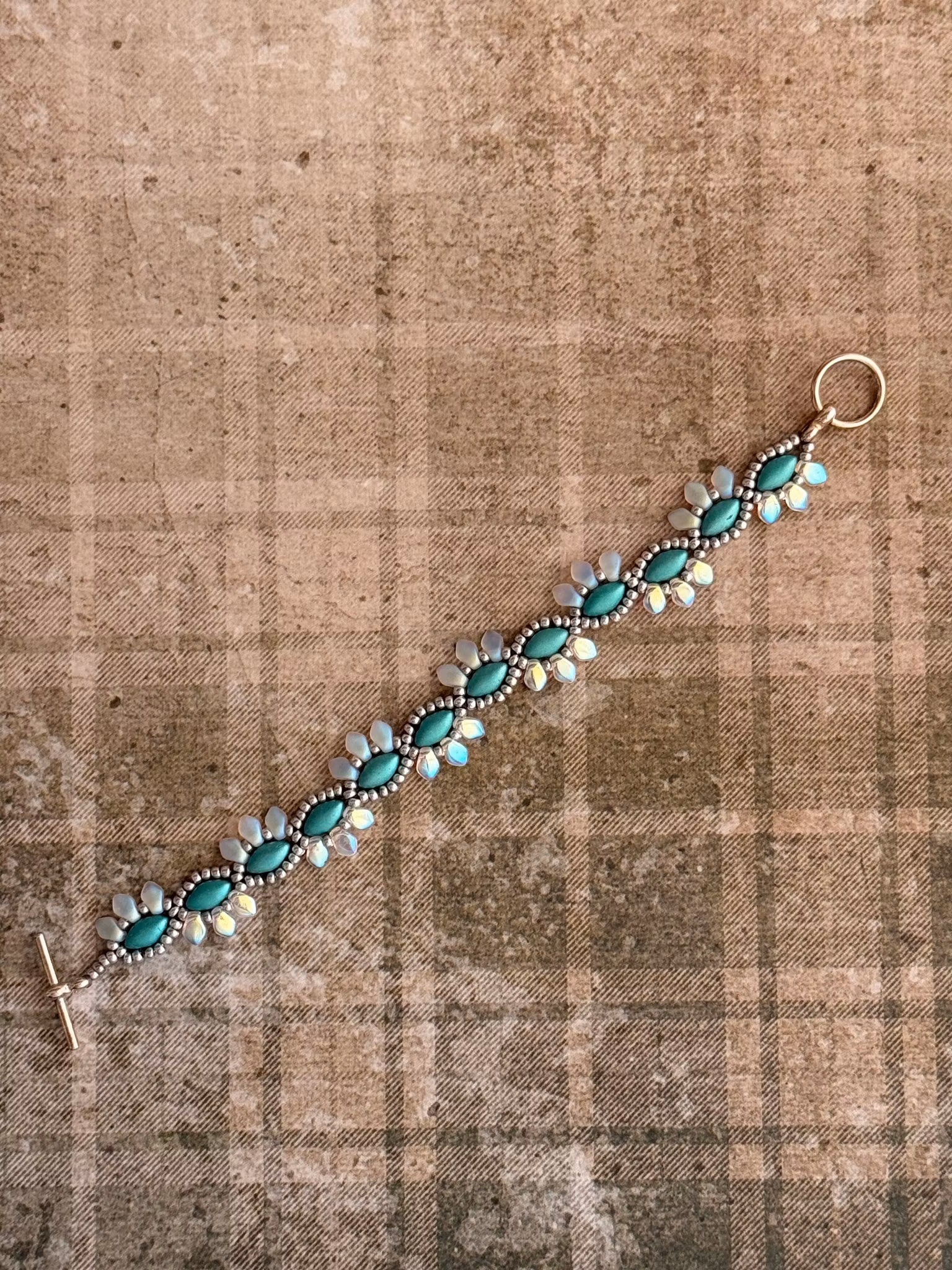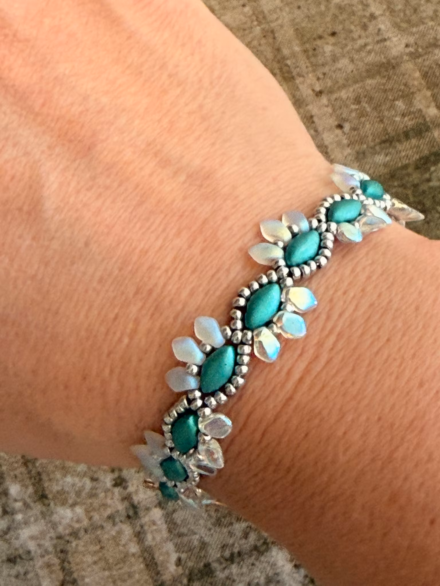 Handsytt armband av tjeckiska glaspärlor, dragonscale som en detalj med skimmer i.
