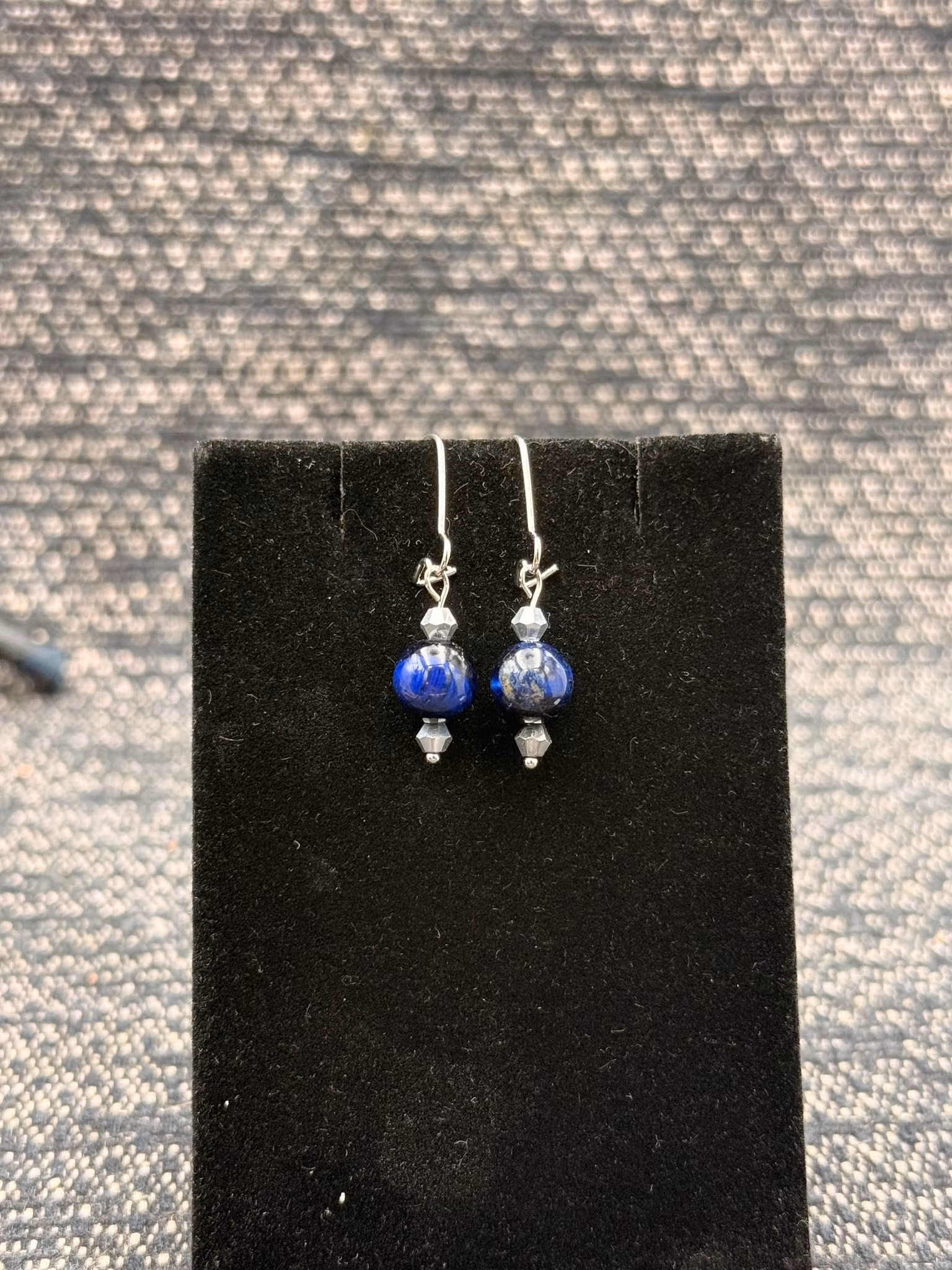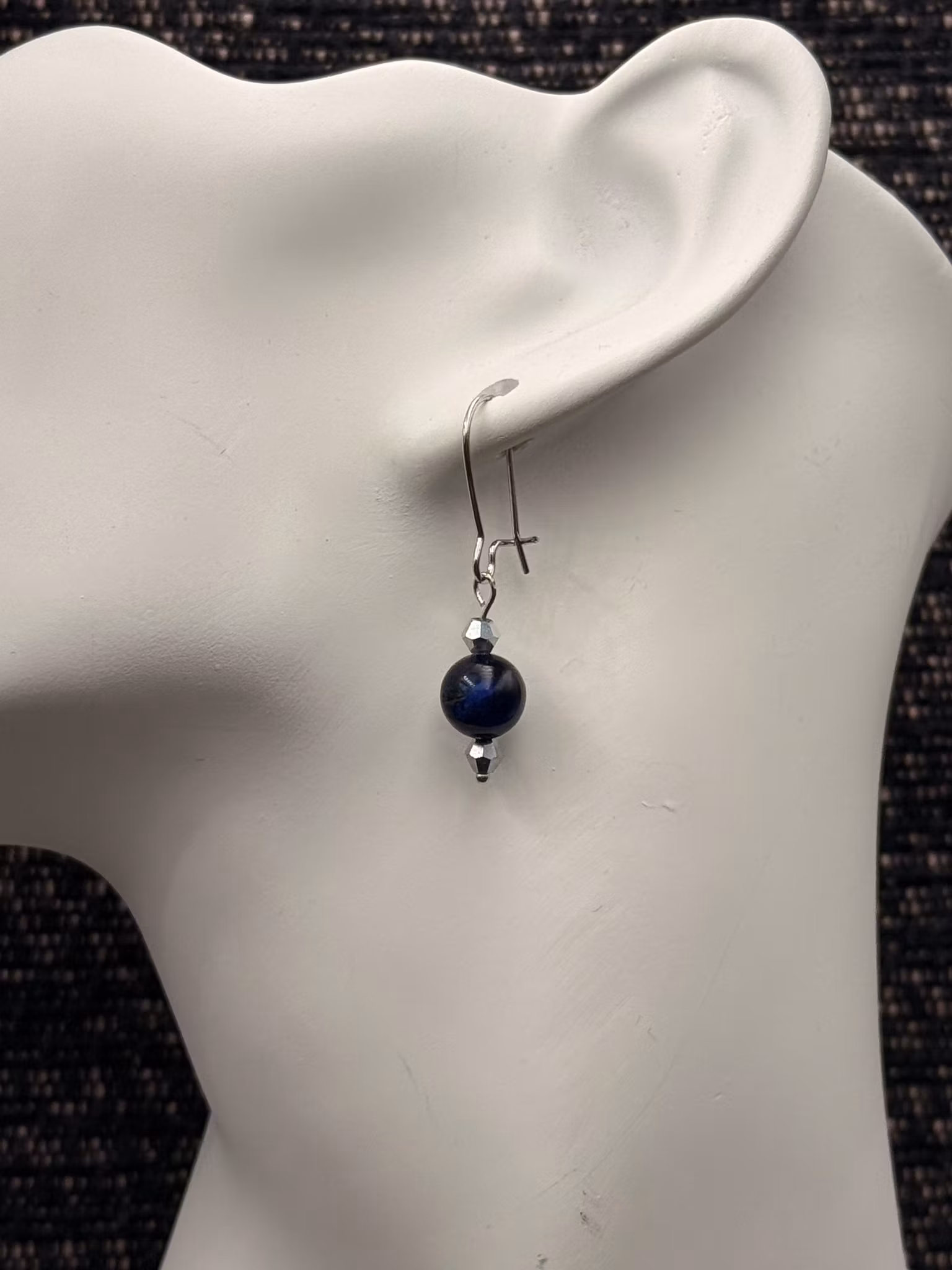Handgjort örhänge med vacker blå halvädelsten som skimrar i blåa nyanser