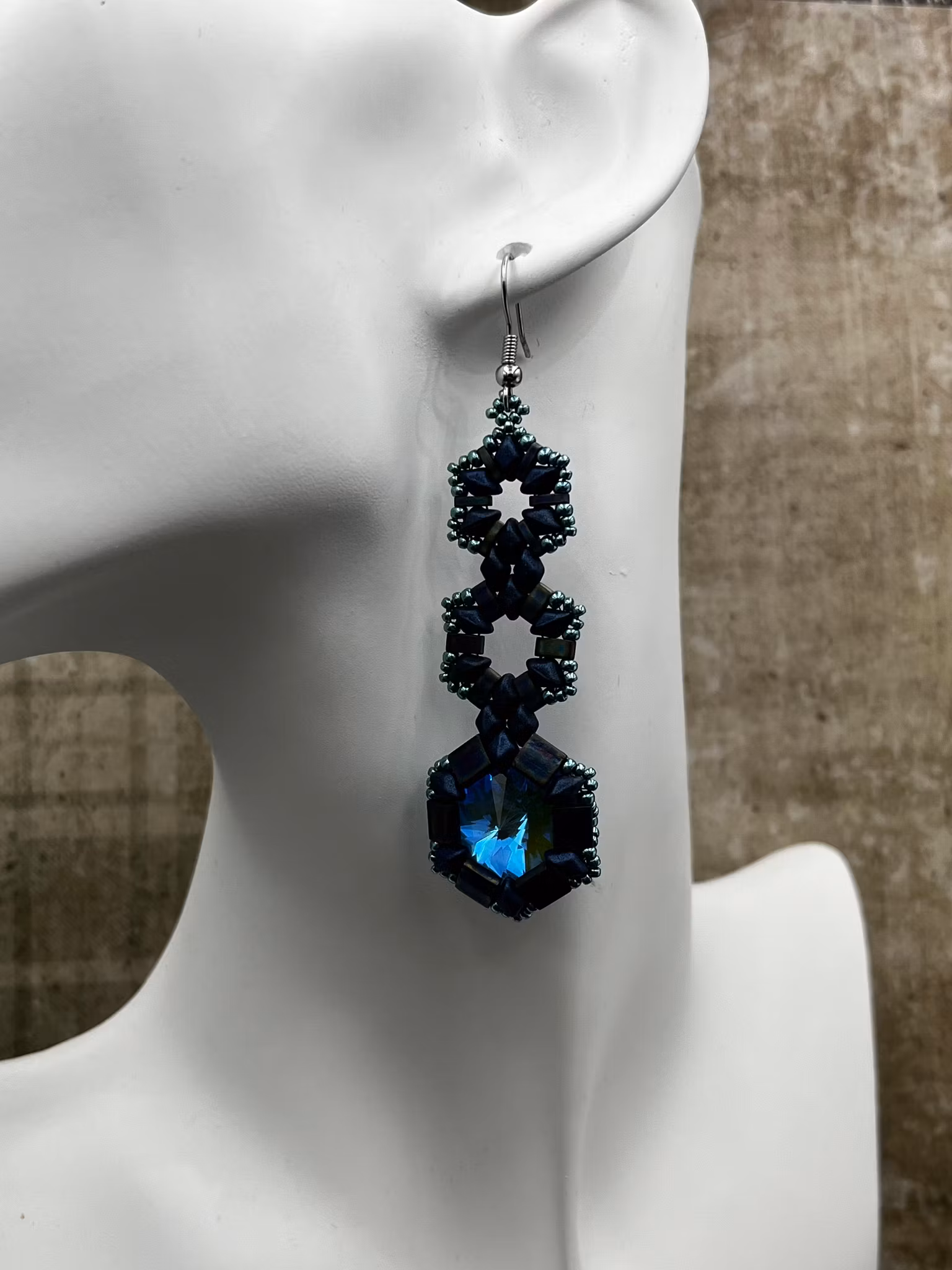 Handsydda örhängen av tjeckiska glaspärlor med 14 mm rivoli i mitten