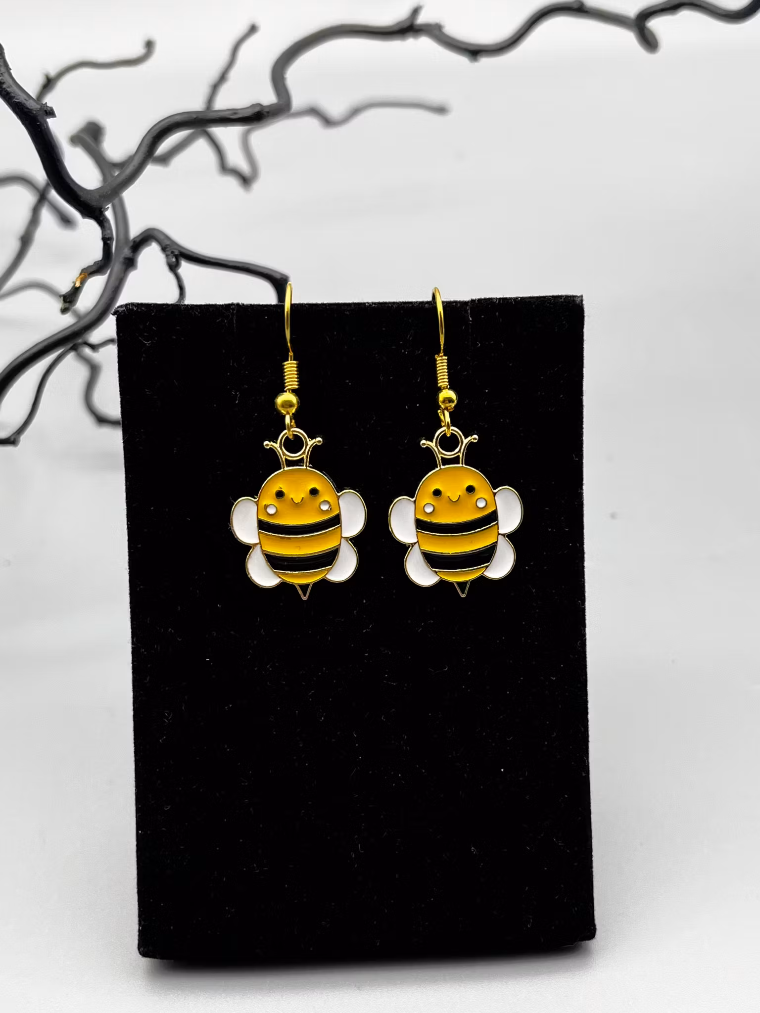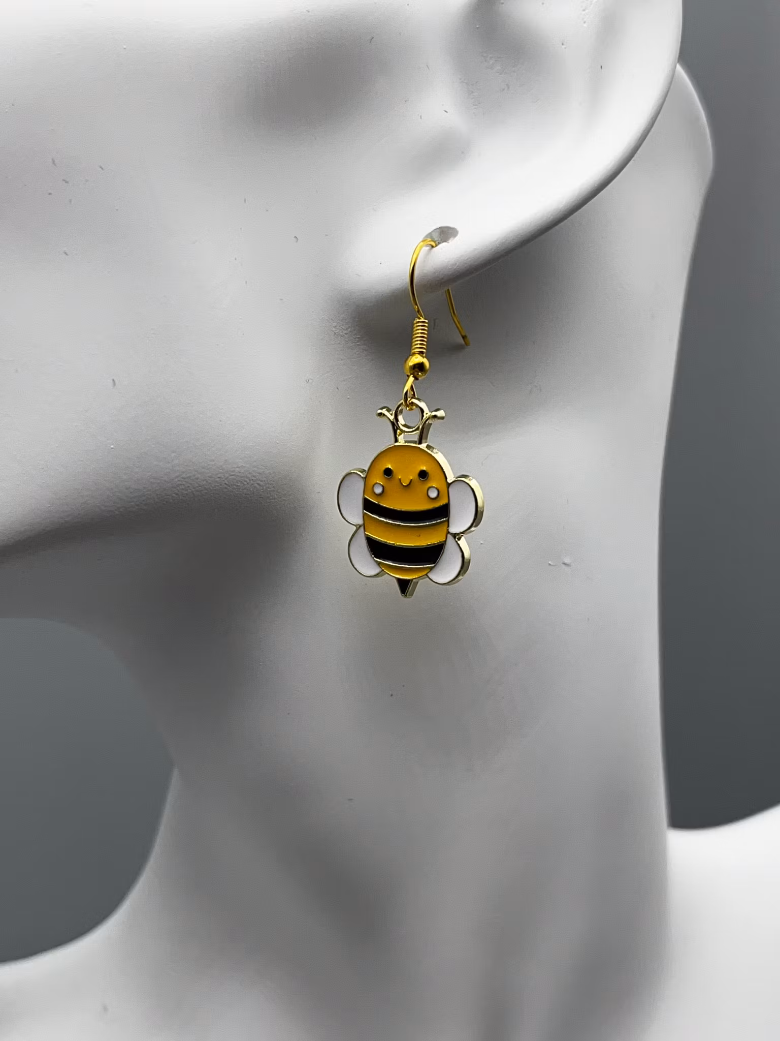 Örhänge med ett glatt bi