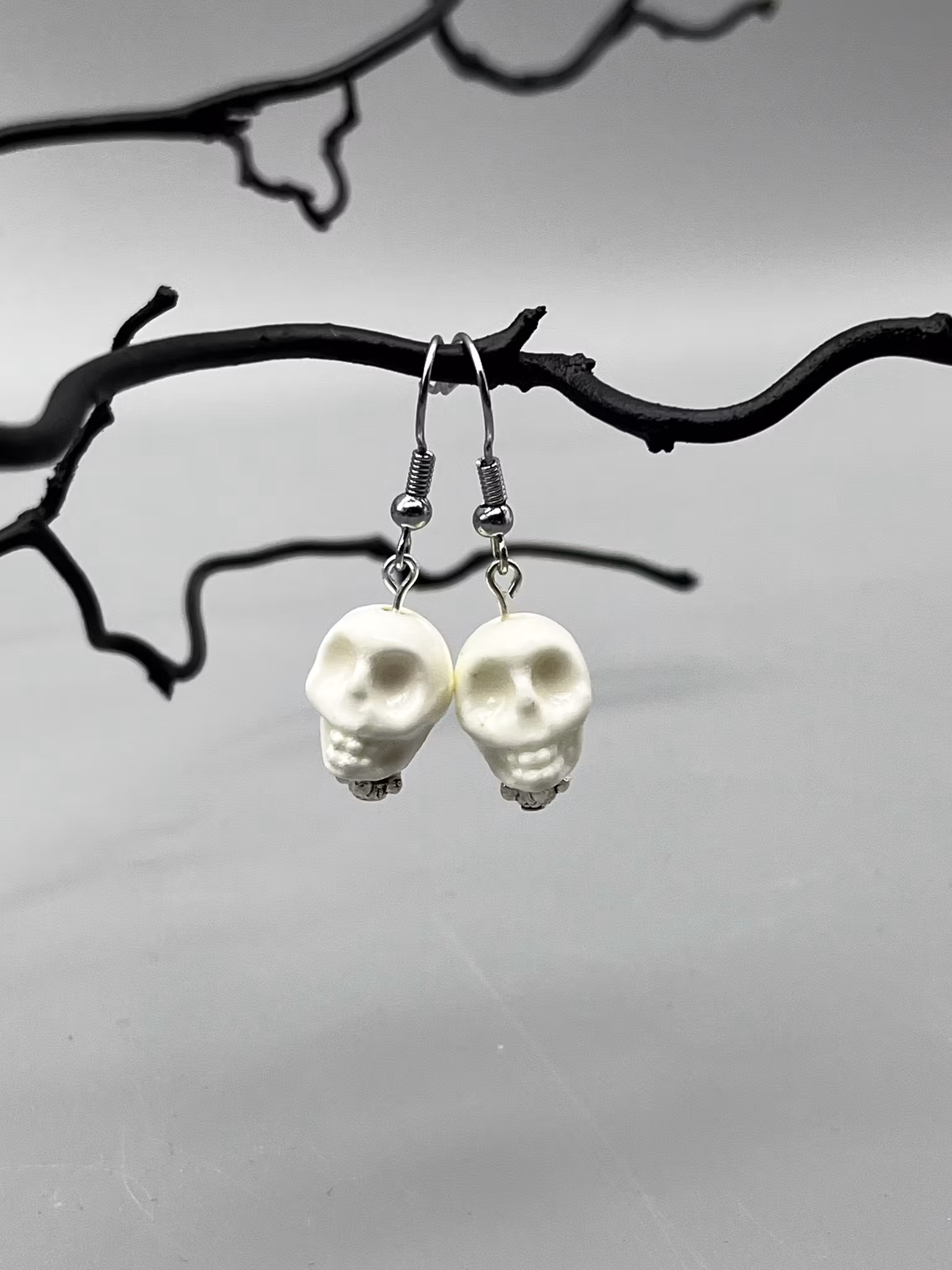 Örhänge med vit döskalle.