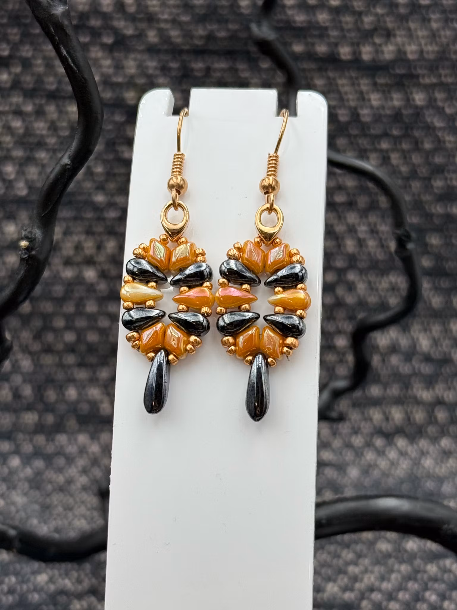 Dessa handsydda örhängen av tjeckiska glaspärlor.