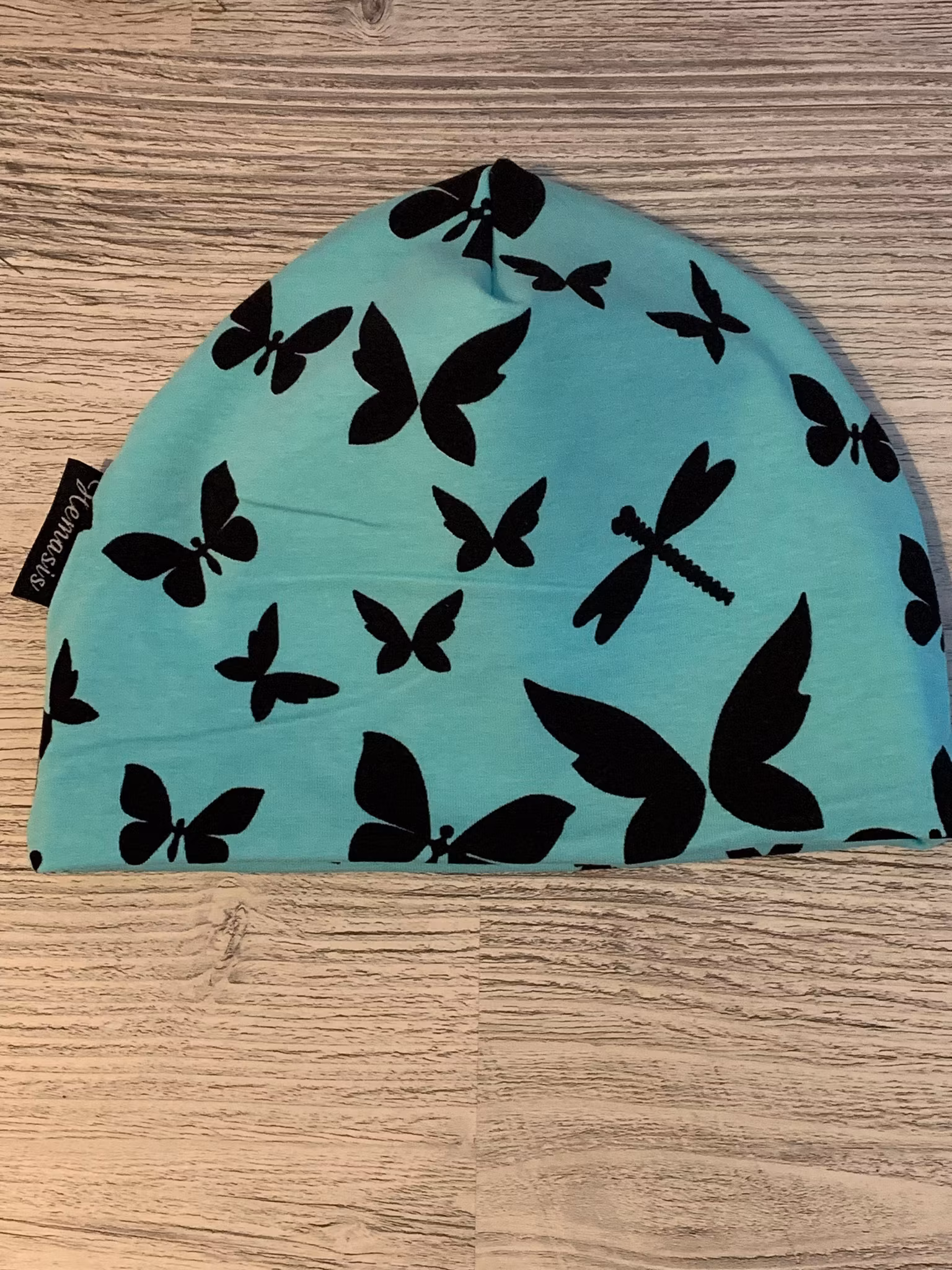 Mössa Barn/Ungdom 6-14 år turkos m fjärilar